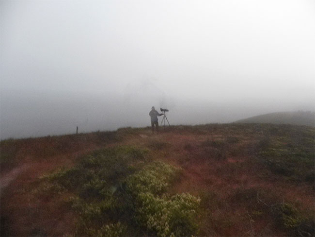 The fog broke for only about thirty minutes, around lunchtime, but otherwise our Big Sit was shrouded in a low-visibility situation, with temperatures to match. This meant that our sea-watching capabilities were dramatically reduced.