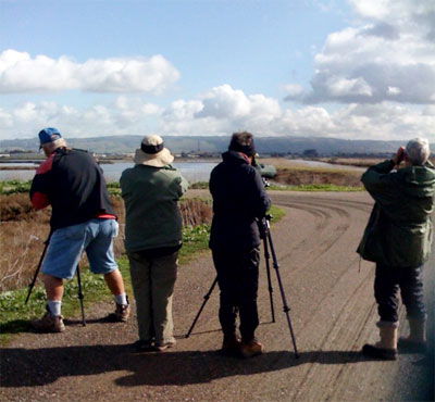Perfect timing between rain storms for this half day walk at Hayward Shoreline Park. We had a wonderful almost rain free walk. The morning was sunny with great views around the bay. We could even see the tops of towers of the Golden Gate Bridge through the buildings of the city of San Francisco. Lots of ducks and shorebirds. Had good scope looks at a couple of Peregrine falcons having a nice breakfast snack on the ground. Only on our walk back to the cars did it start to rain (pour.)